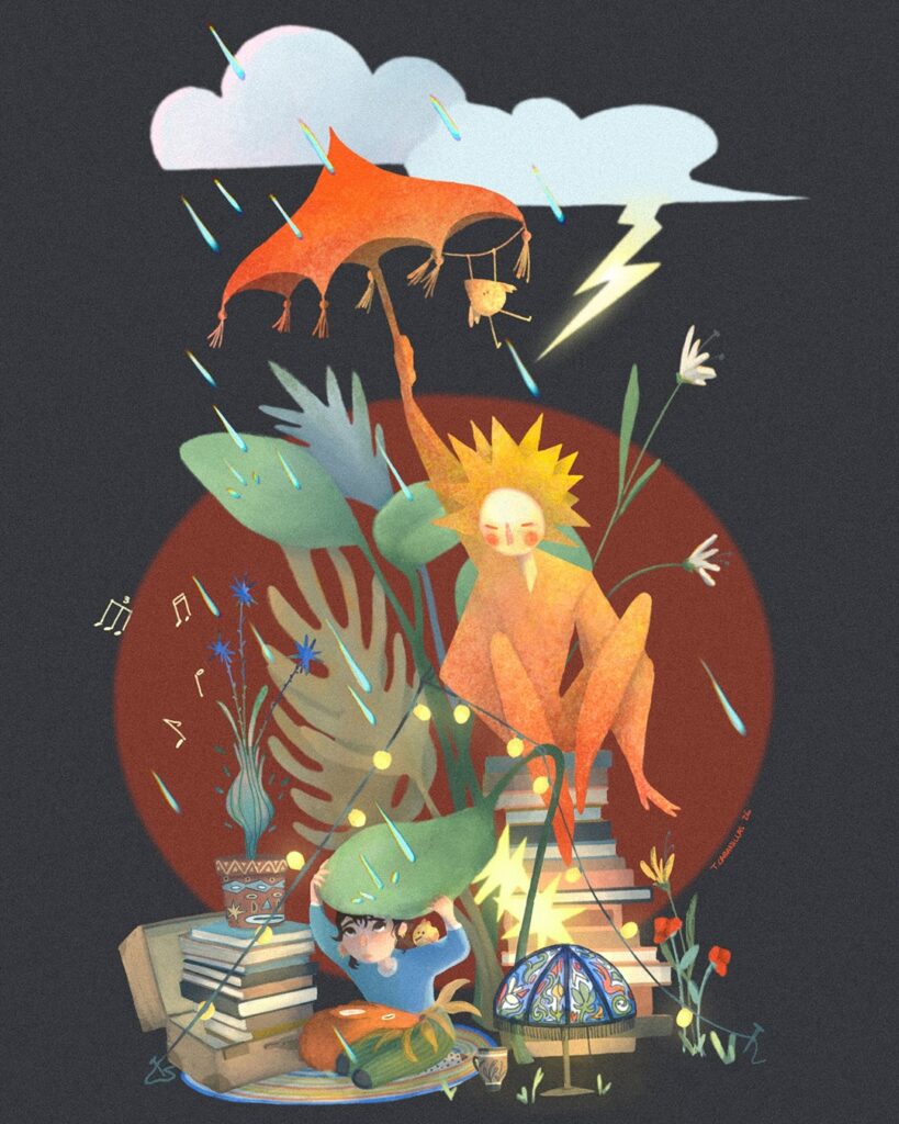 Waiting for the storm to pass… •Lately I feel like hiding from the world… Could I pleeeease stay in a peaceful place in my mind, and get lost with my art and drawings and my silly thoughts, til the world is fixed?? 🙄😑⛈️🌪️⛈️🌪️⛈️🌪️⛈️•••#illustration #procreate #artwillsaveus